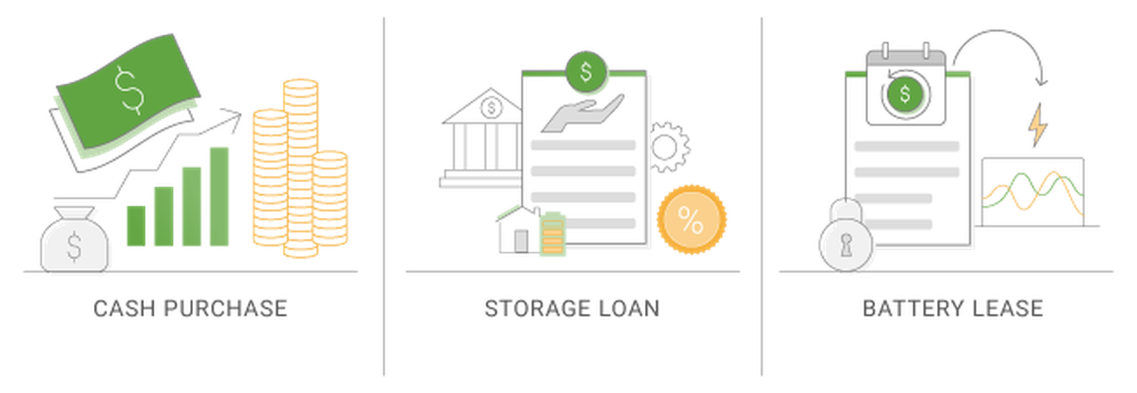Similarly to solar, there are three primary models for financing your energy storage systems, with slight variations from what’s available for solar.